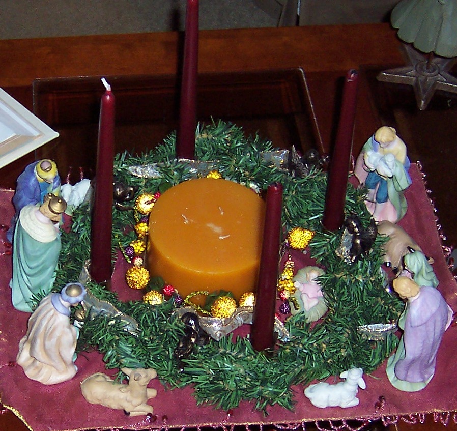 I went to a nearby Christian bookstore and bought an Advent candle wreath like this one: